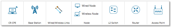 Connect the devices in the Cognitive Radio network by clicking the Wired/Wireless icon on the toolbar.
