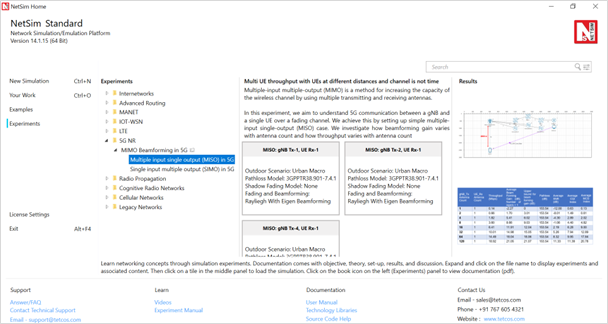 Open NetSim and click on Experiments > 5G NR > MIMO Beamforming in 5G > Multiple input single output (MISO) in 5G then click on the tile in the middle panel to load the example as shown in below.