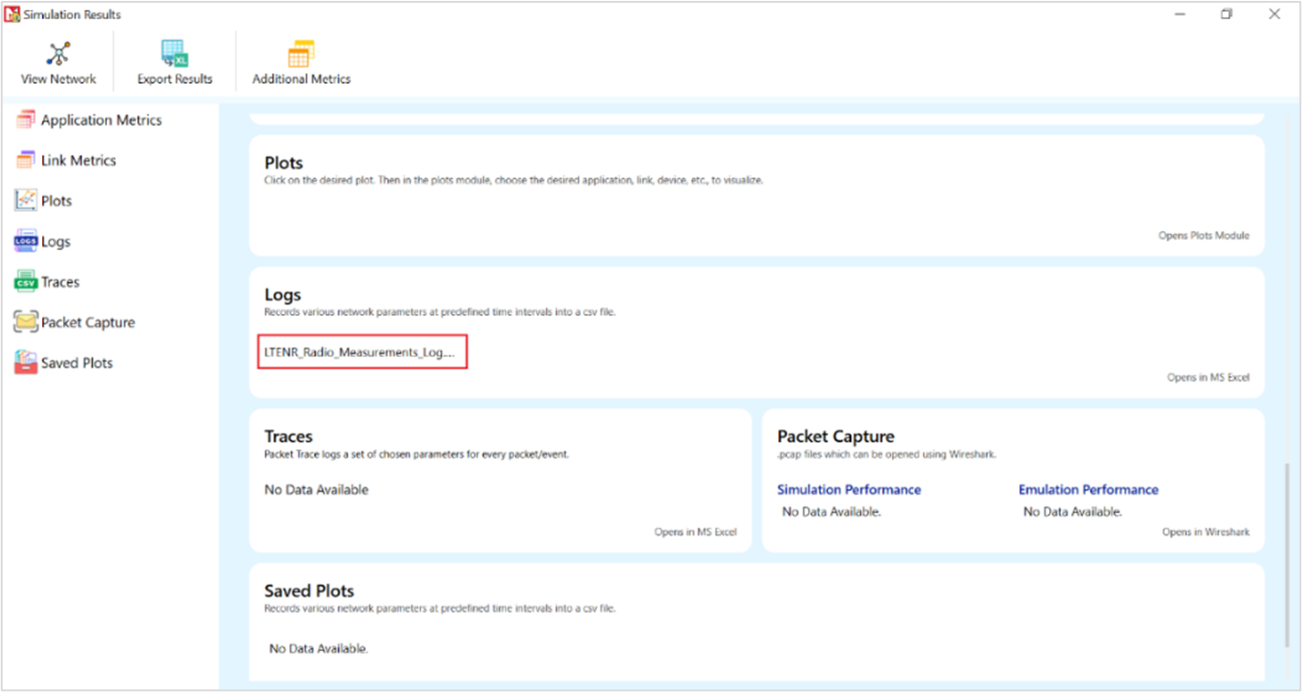 Figure-76: LTENR Radio Measurements log file created after simulation.