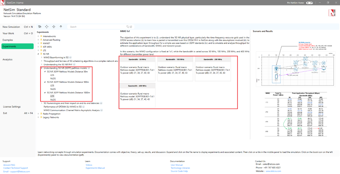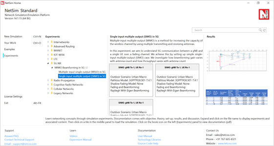 Figure-6: List of experiments under MIMO Beamforming in 5G for SIMO