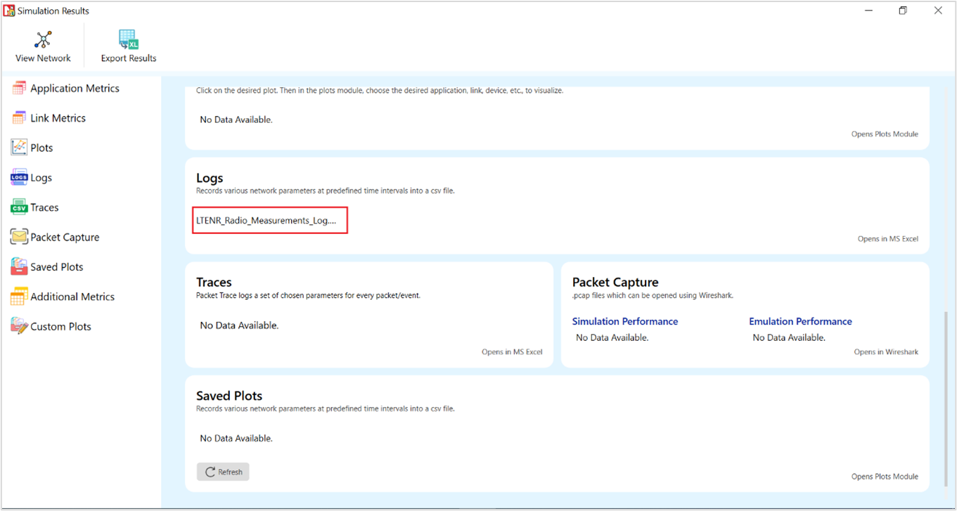 Figure-75: NetSim Results window showing access to log file generated