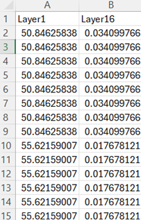 Similarly, filter the LAYER_ID as 16 and copy all the eigen values and paste in new sheet with column name Layer16 as below.