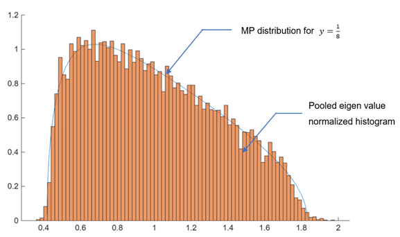 Program 2: MATLAB code for plotting the MP distribution for \(y = \frac{1}{8}\ \) and pooled eigenvalues histogram, from NetSim simulation results