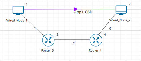Step 1: A network scenario is designed in NetSim GUI comprising of 2 Wired Nodes and 2 Routers in the “Internetworks” Network Library.