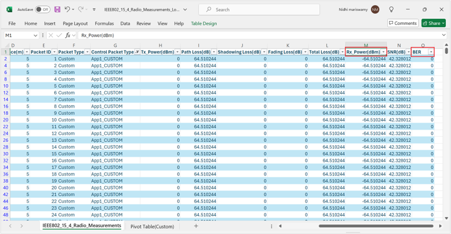 To obtain throughput from simulation, payload transmitted values will be obtained from Link metrics and calculated using following formula: