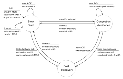 During the life of a TCP connection, the TCP protocol running in each host makes transitions through various TCP states. Figure-1 illustrates the typical TCP states visited by the client and the server during connection establishment and data communication.