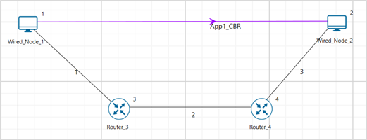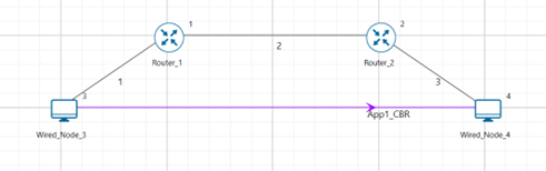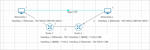Step 1: A network scenario is designed in NetSim GUI comprising of 2 Wired Nodes and 2 Routers in the “Internetworks” Network Library.