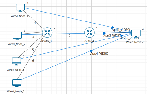 Step 3: Click on the link ID (of a wired link) and expand the link properties panel on right. Set Max Uplink Speed and Max Downlink Speed to 10 Mbps. Set Uplink BER and Downlink BER to 0. Set Uplink Propagation Delay and Downlink Propagation Delay as 100 microseconds for the links 1 and 3 (between the Wired Node’s and the routers). Set Uplink Propagation Delay and Downlink Propagation Delay as 50000 microseconds and Uplink BER and Downlink BER to 0.00001 for the backbone link connecting the routers, i.e., 2.