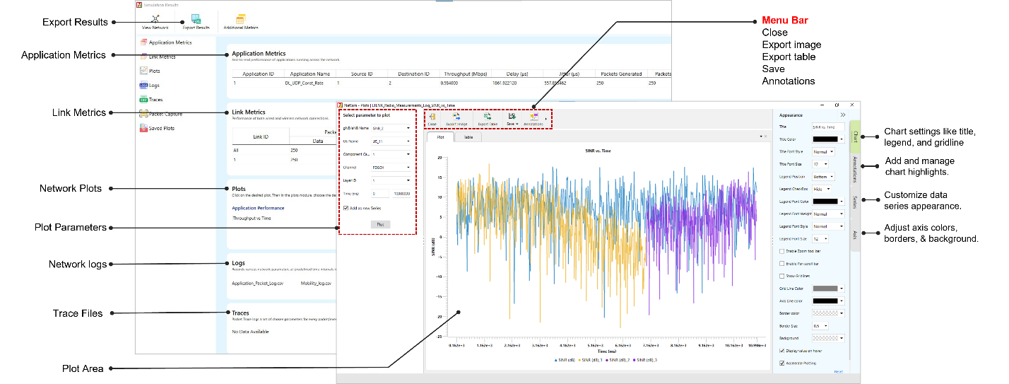 NetSim 5G NR Library allows for end-to-end simulation of all layers of the protocol stack as well as applications running over the network1. The 5G devices available in NetSim are the 5G core devices: (i) AMF, (ii) SMF, (iii) UPF, and RAN devices: (i) gNBs (ii) UEs. The Simulation is a discrete event and done at a packet level abstraction. This 5G library is designed to connect to the base component of NetSim (and in turn to other components), which provides functionalities such as the TCP/IP Network Stack, Routing algorithms, Mobility, Output Metrics, Traces etc. NetSim’s protocol source C code shipped along with (Standard / Pro versions) is modular and customizable to help researchers to design and test their own 5G protocols.