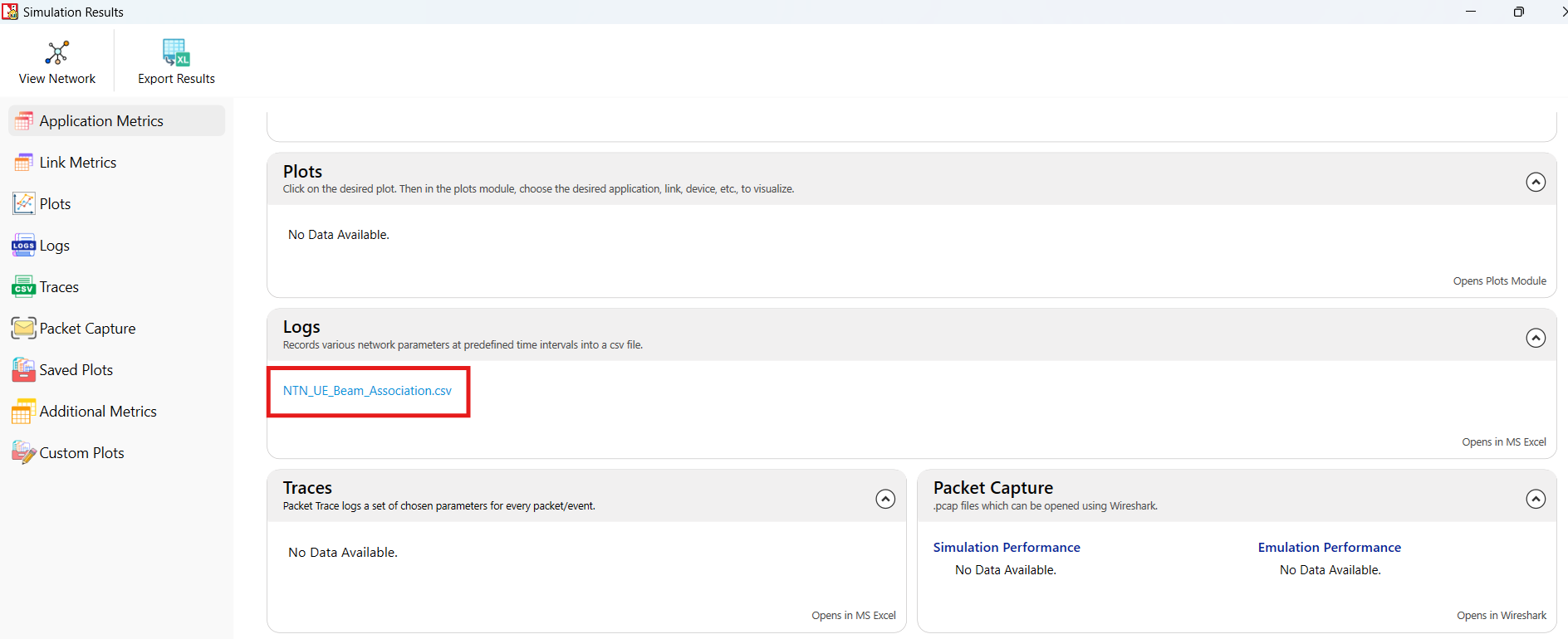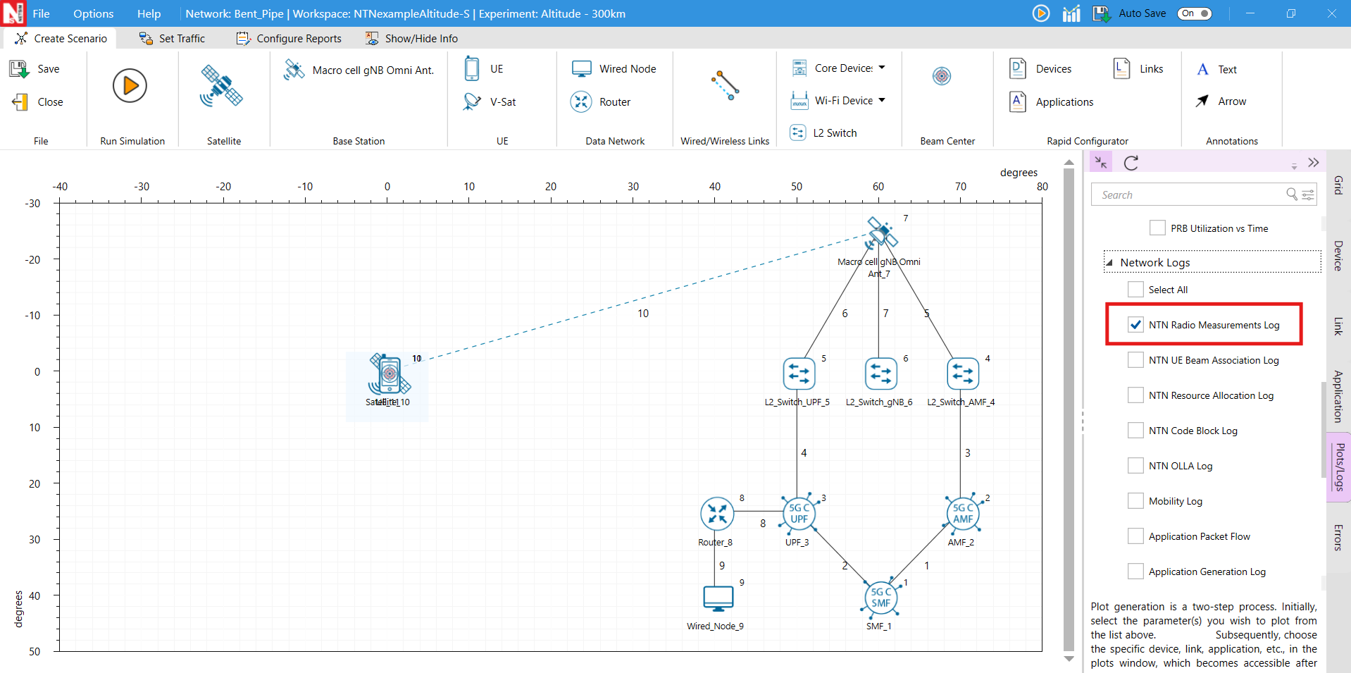 Enable NTN UE Beam association log by clicking on plots/logs tab on the right side of the panel.