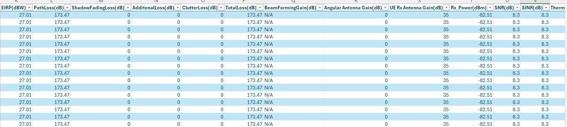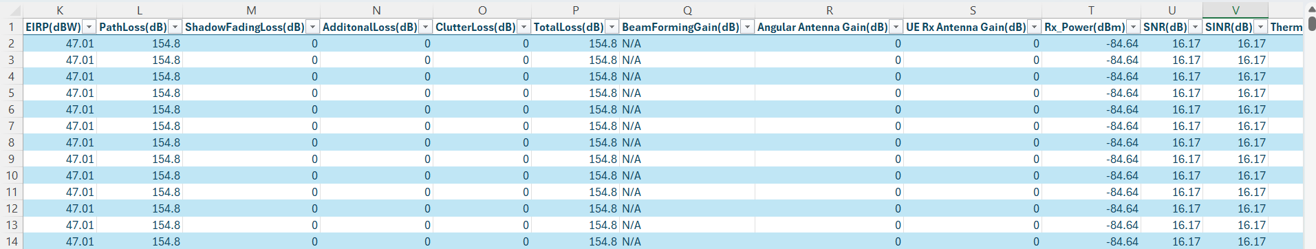 After the simulation, open the NTN UE Radio Measurement.csv under logs section from simulation results window and observe the SNR and pathloss value.
