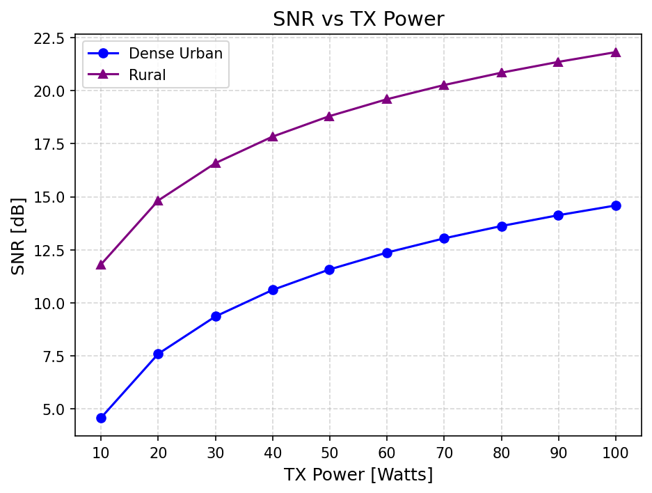 SNR Variation Across Outdoor Scenarios with Varying Transmit Power¶