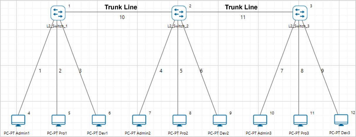 Trunk link connection is the connection where a switch port is connected with a device that can understand multiple VLANs. Usually, trunk link connection is used to connect two switches.