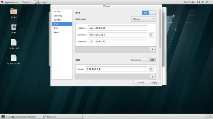 In the IPV4 settings, set static IP Address to the machine and specify the Emulation Server IP as the Gateway IP.