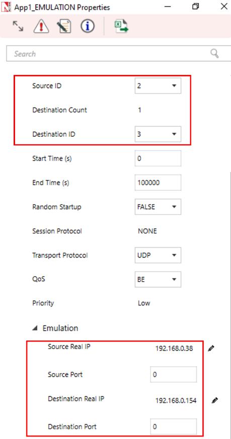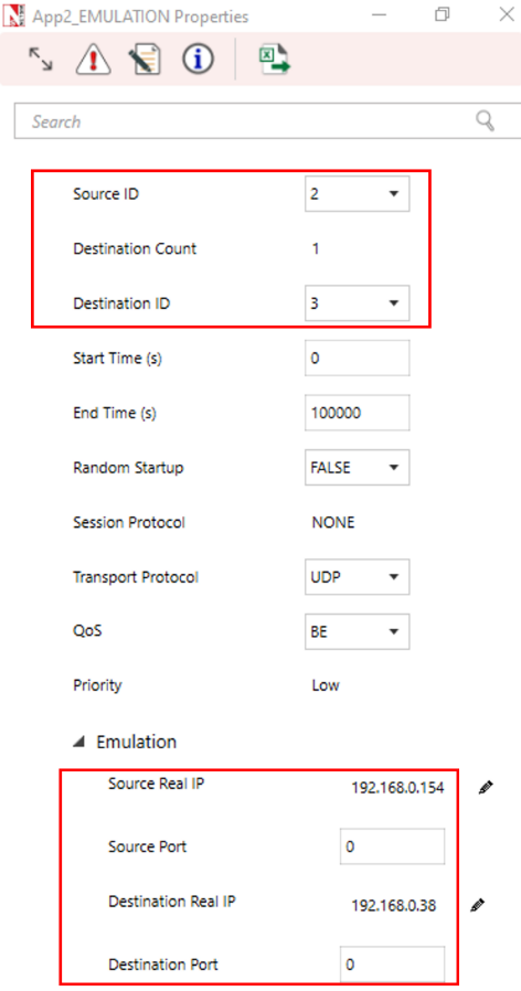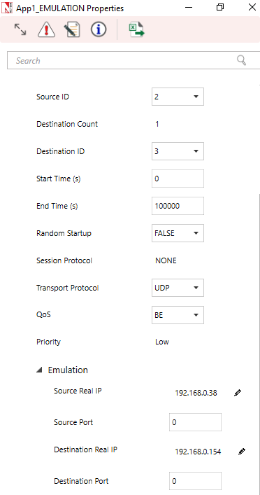In the Application Properties, set Application Type as “EMULATION”. Assign real Source IP address and Destination IP address in the respective fields. Then Click OK.