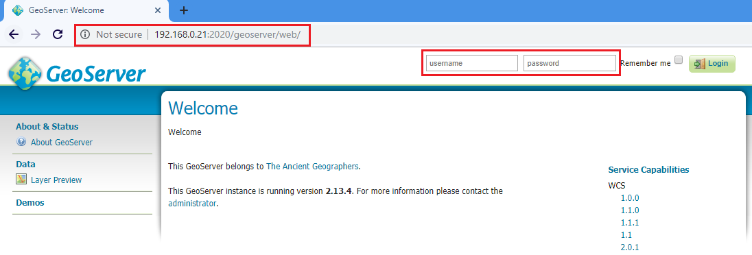 Now access GeoServer via web browser in System 2 by specifying IP address: GeoServerPort//Geoserver/browser. Eg:192.168.0.21:2020/Geoserver/browser