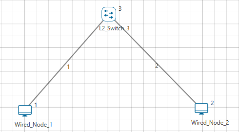 Configure an Emulation Application from Wired Node 2 to Wired Node 3 as shown below:
