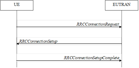 RRC connection establishment starts with UE sends the RRC connection request to EUTRAN (eNB). RRC connection setup as a response sends back from the EUTRAN to UE. The UE sends back the RRC connection setup complete and the RRC connection is established between UE and EUTRAN (eNB).