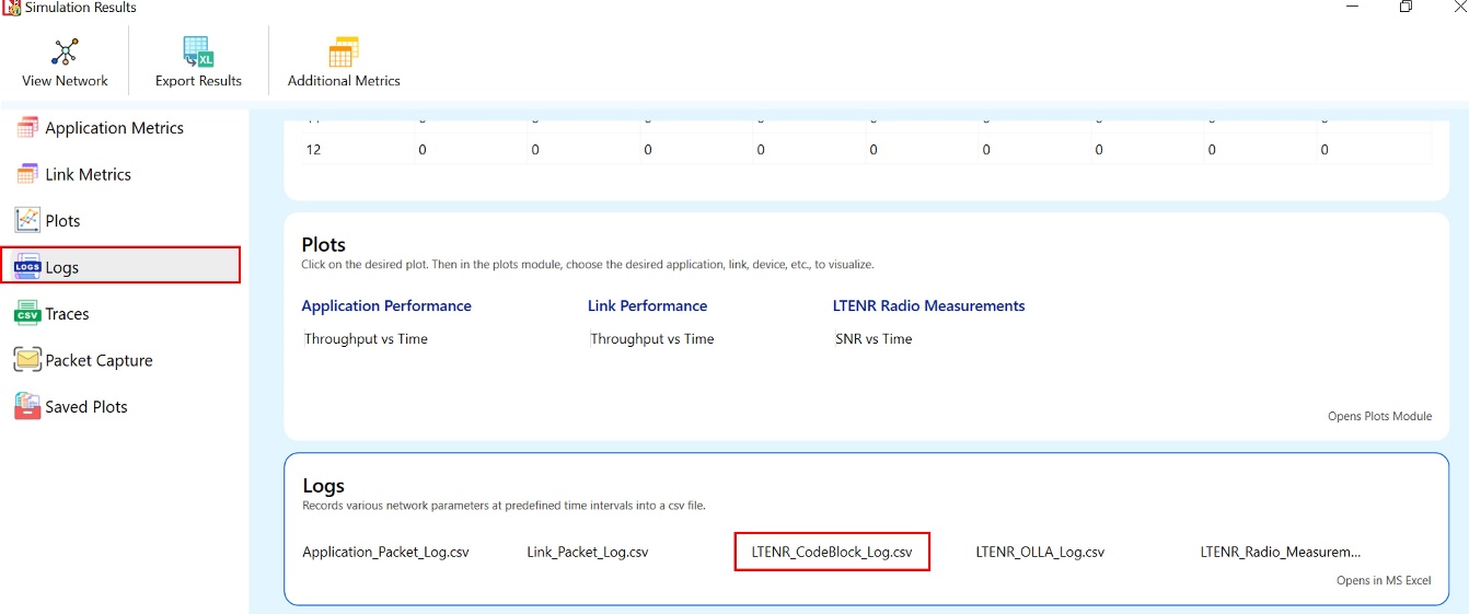 The LTE_CodeBlock_Log.csv file will contain the following information: