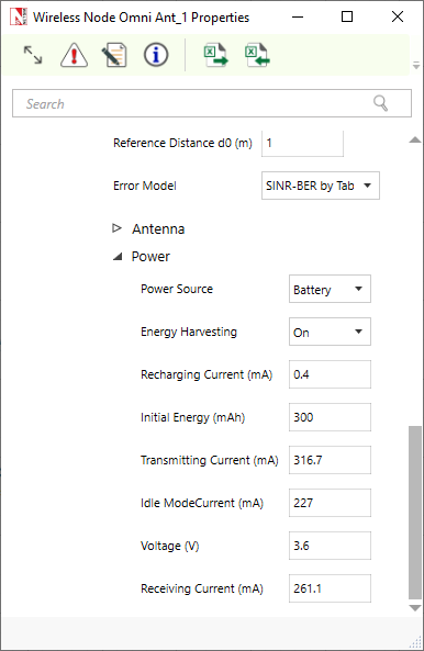 NetSim MANET supports Omni and sector antennas. These antenna patterns are defined by gain values that vary as a function of direction in three dimensions. Thus, a transmitter’s antenna provides a gain value with respect to every other point in space. The same is true of a receiver’s antenna. For a given transmission, the gains of both the transmitter and receiver, with respect to each other, are considered.