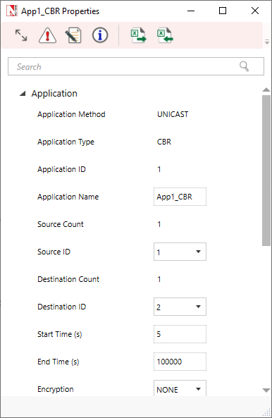 Configure an application between any two nodes by selecting any application from the Set Traffic tab. Clicking on the application will open a right-side property panel where you can set the properties according to the requirement.