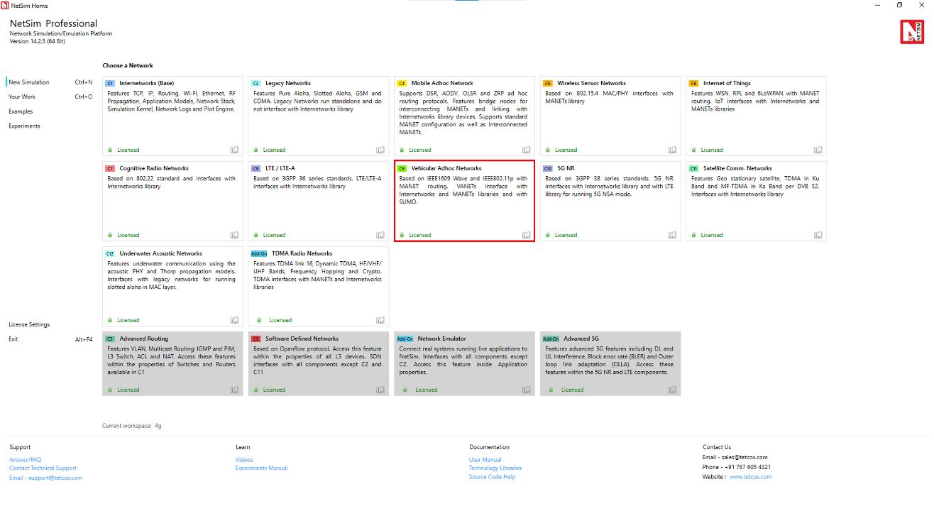 Open NetSim and click New Simulation \(\rightarrow\) Vehicular Adhoc Network (Vanet) as shown Figure 2-1.