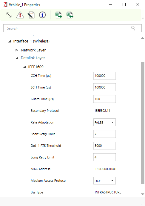 | Power Source | Local | Main Line or Battery | VANETs communicate with each other using battery power. By default, the power model is set to Main Line, which represents a general-purpose alternating current (AC) electric power supply. The power model is user-configurable, with adjustable properties. |