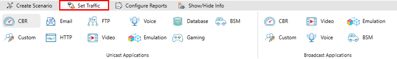 Click on the Application icon present in the Set Traffic option and set properties. Multiple applications can be generated by using add button in Application properties.