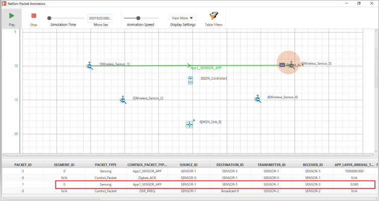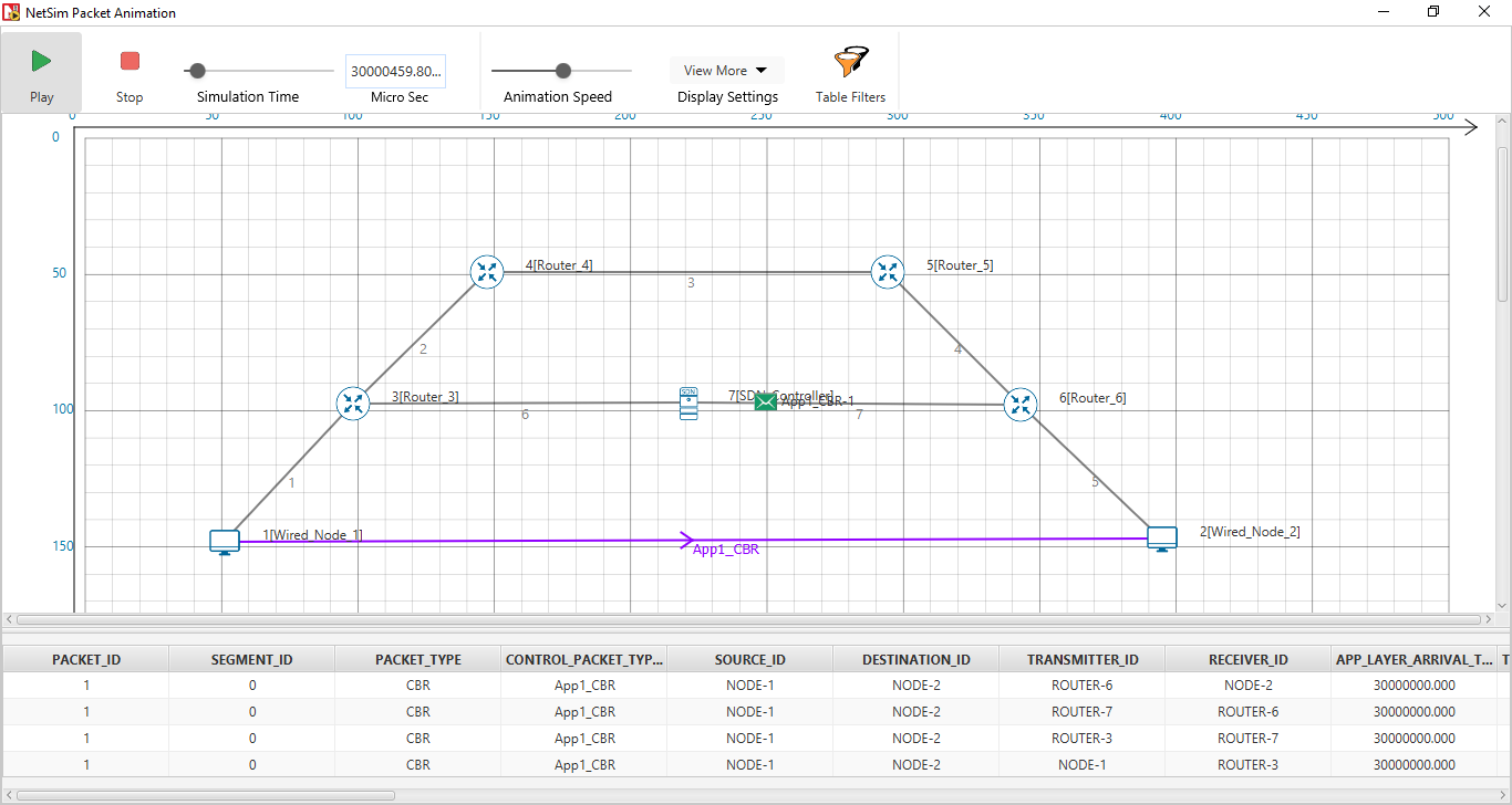 - Click View Animation and see the Packet Animation. The > packets reach Wired_Node_2 via Router 3 > SDN_Controller > > Router_6.