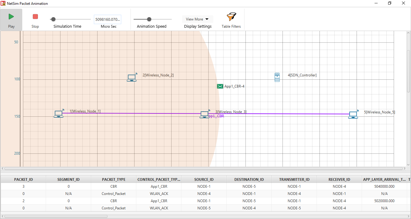 Click View Animation and see the Packet Animation. The > packets reach Wireless_Node_5 via Wireless_Node_1 > > Wireless_Node_2 > Wireless_Node_3 > SDN_Controller > > Wireless_Node_5.