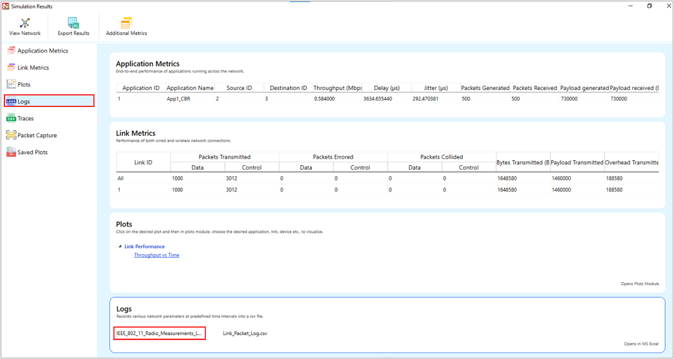 IP Metrics table will be available in the Simulation Results dashboard if IP is enabled in at least one device in the network. It provides the following information specific to IP protocol: