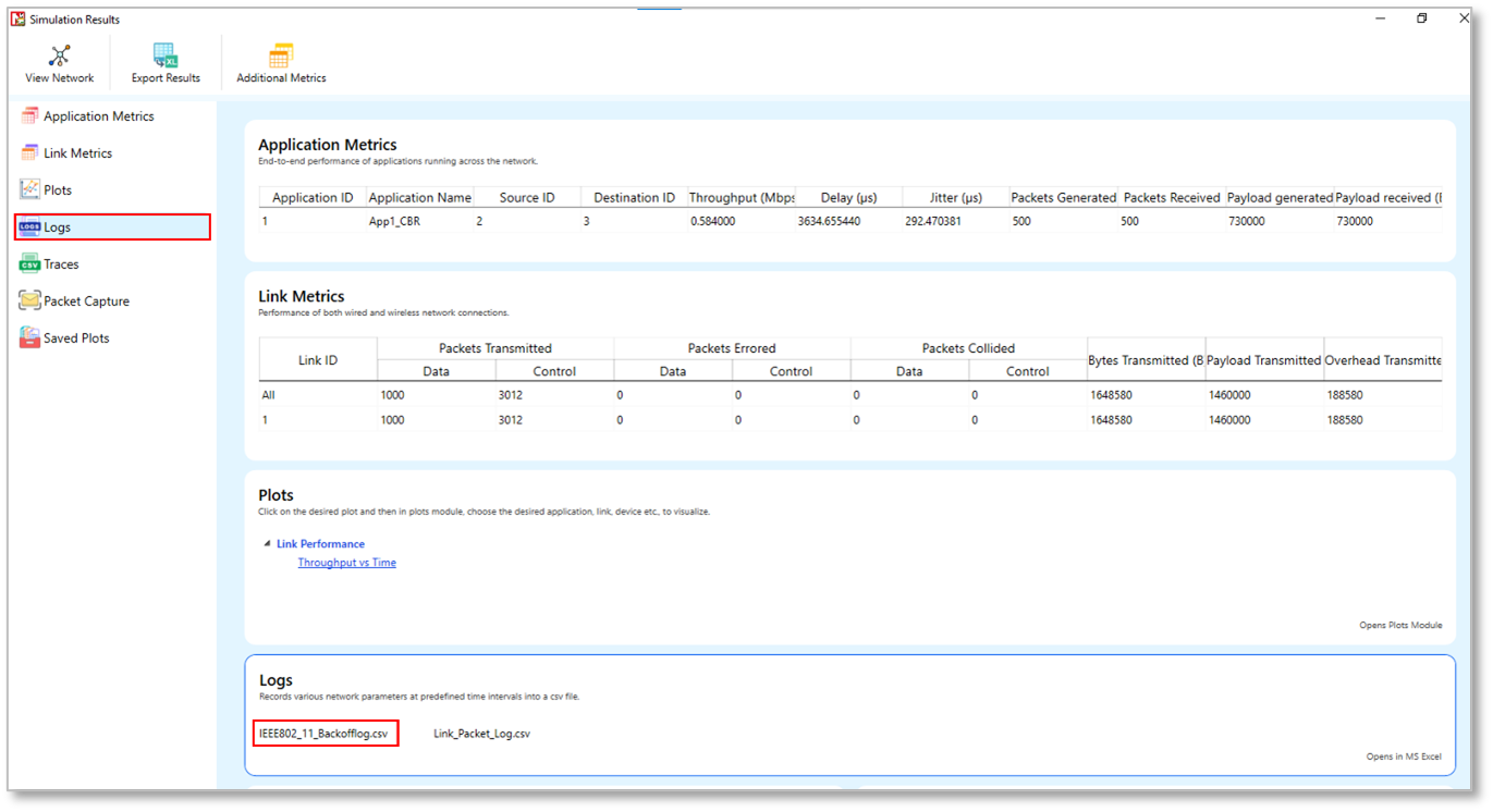 UDP Metrics table will be available in the Simulation Results dashboard if UDP is enabled in at least one device in the network. It provides the following information specific to UDP see Table-26.