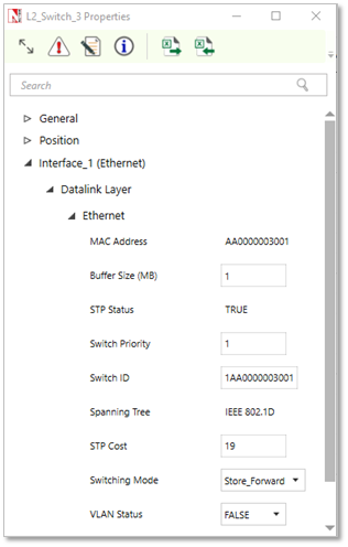 If you create a network with two wired nodes and L2_Switch, the IP addresses are assigned as 192.168.0.2 and 192.168.0.3 for the two wired nodes. The default subnet mask is assigned to be 255.255.0.0. It can be edited to 255.0.0.0 (Class A) or 255.255.255.0 (Class C) subnet masks. Both the nodes are in the same network (192.168.0.0).
