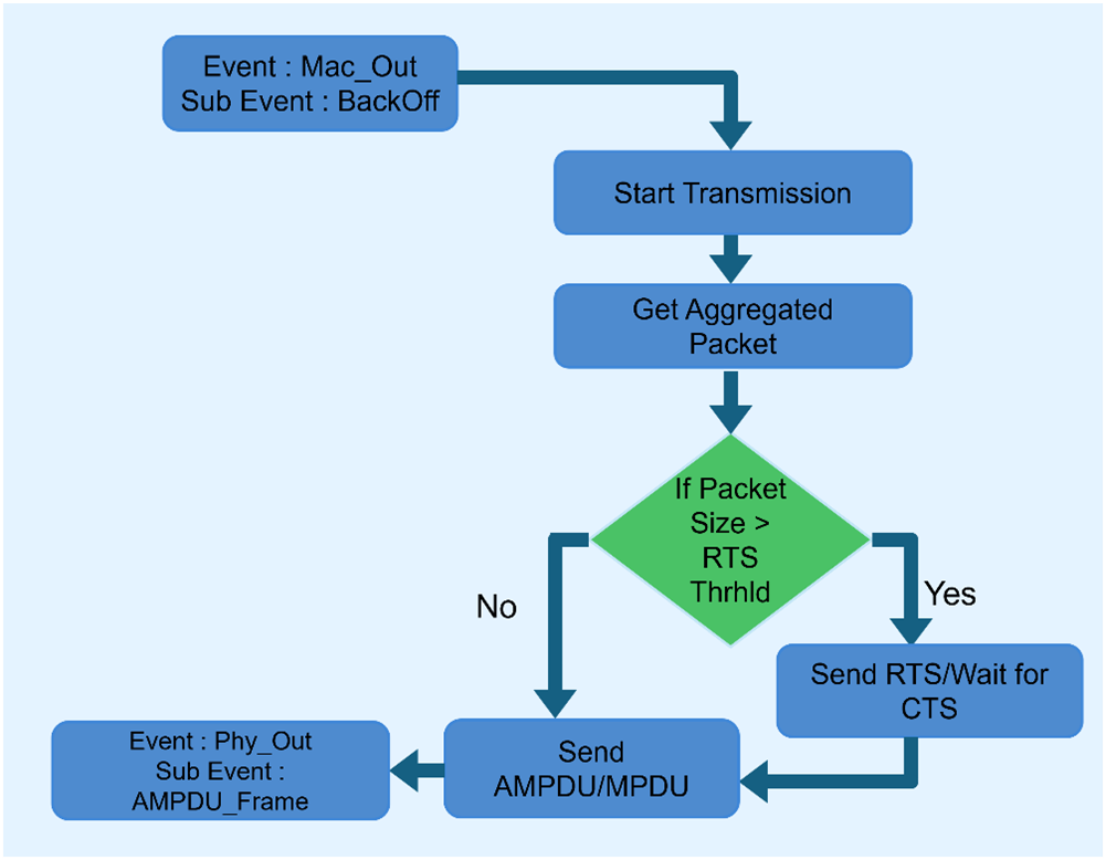Packet queuing, aggregation, transmission, and retransmission.