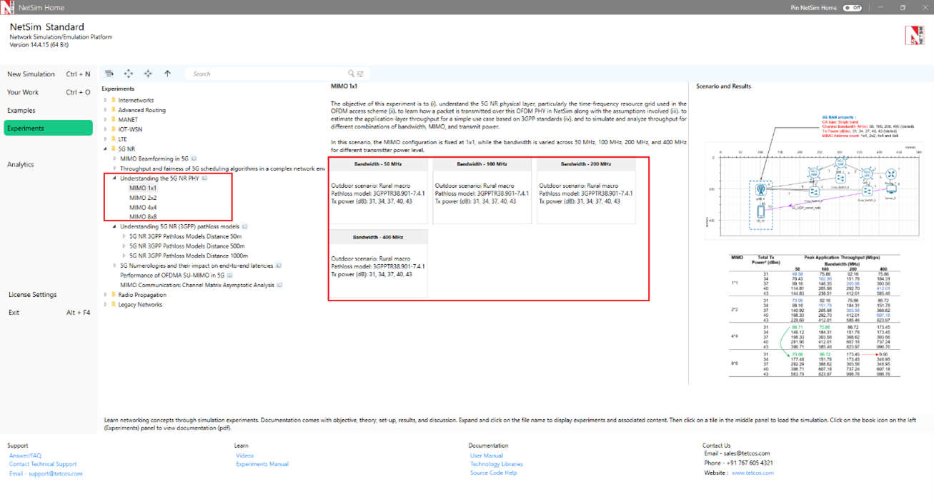 Figure-6: List of experiments under MIMO Beamforming in 5G for SIMO