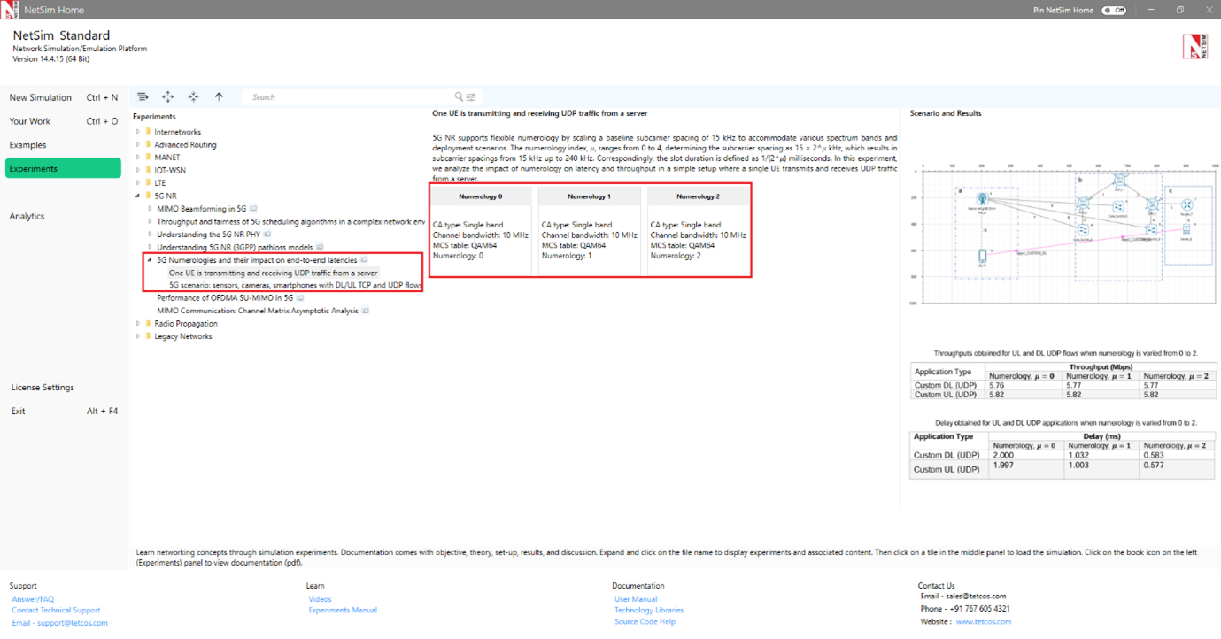 A downlink CBR application was configured from wired node to UE with Transport protocol as UDP and Packet Size of 1460 Bytes and Inter Arrival time of 179.69 µs and the Start Time was set to 1s.