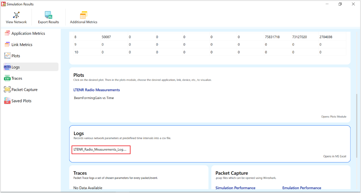 Figure-76: LTENR Radio Measurements log file created after simulation.
