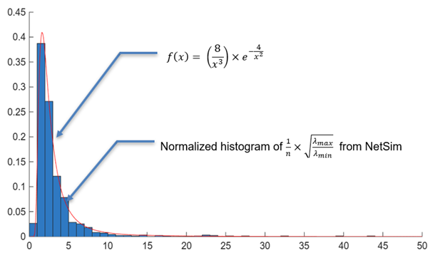 Program 1: MATLAB code for plotting condition number from NetSim and comparing against the asymptotic PDF from analysis.