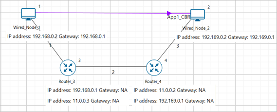 Step 1: A network scenario is designed in NetSim GUI comprising of 2 Wired Nodes and 2 Routers in the “Internetworks” Network Library.