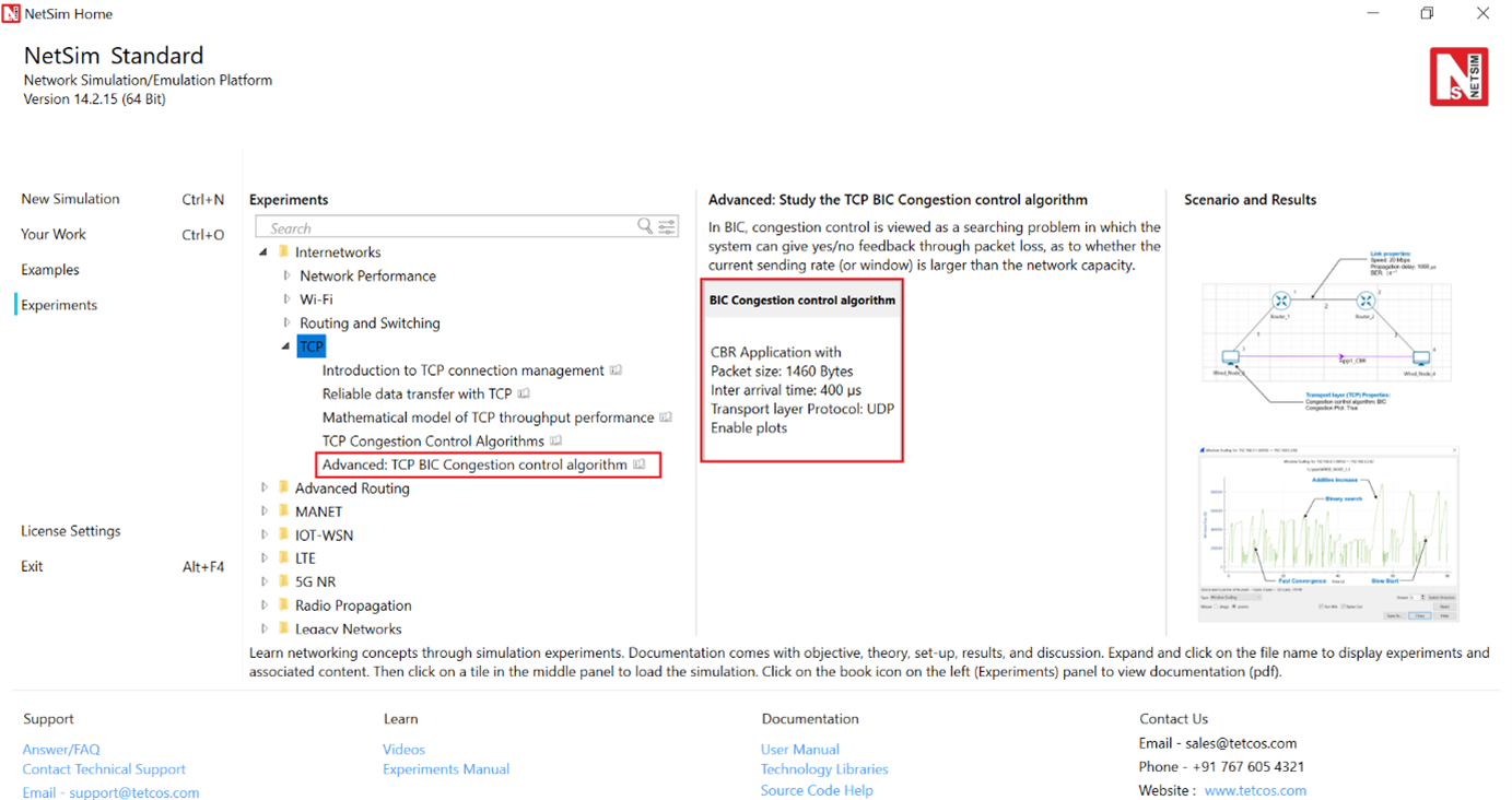 Open NetSim and click on Experiments> Internetworks> TCP> Advanced TCP BIC Congestion control algorithm then click on the tile in the middle panel to load the example as shown in below Figure-27.