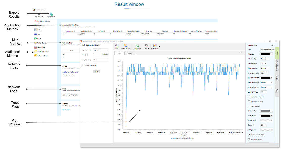 Figure-2: The Result dashboard and Plot window shown in NetSim after completion of simulation