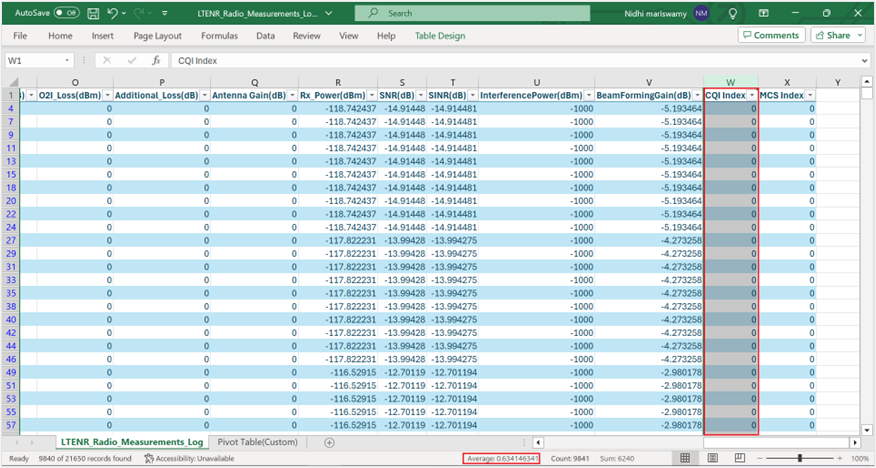 Now open the file LTENR_Radio_Measurements_Log.csv file.