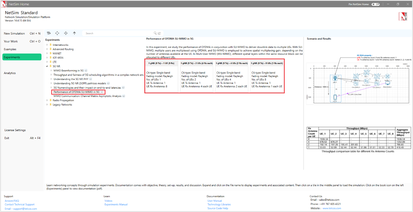 Figure-6: List of experiments under MIMO Beamforming in 5G for SIMO