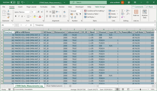 Figure-76: LTENR Radio Measurements log file created after simulation.