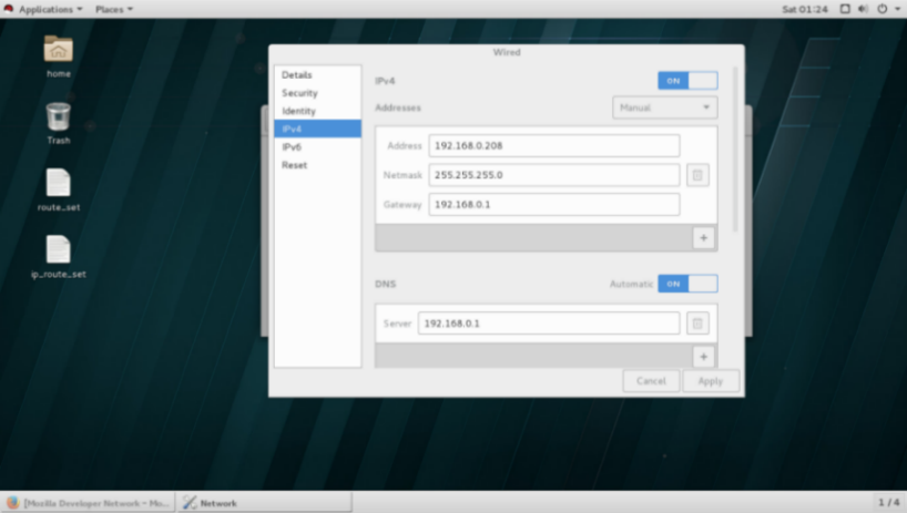 In the IPV4 settings, set static IP Address to the machine and specify the Emulation Server IP as the Gateway IP.