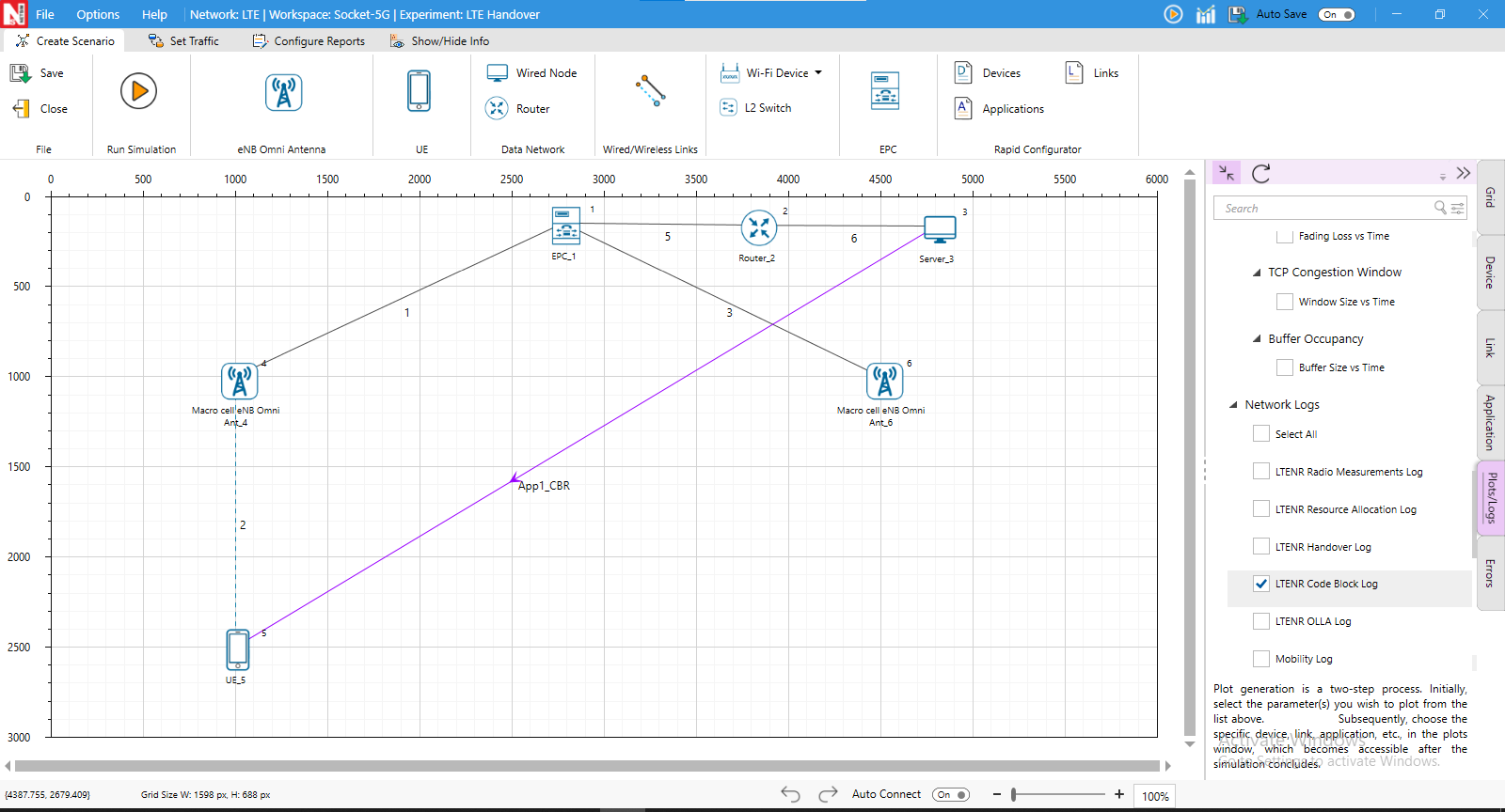 NetSim’s Code Block Log records parameters associated with Code Block Segmentation, such as Process ID, TB Size, Modulation, Code Rate, CBS, BLER, CBG ID, and more, along with remarks on events associated with HARQ and PRB allocation events. This log is useful for understanding the BLER model and Code Block Segmentation in 5G.