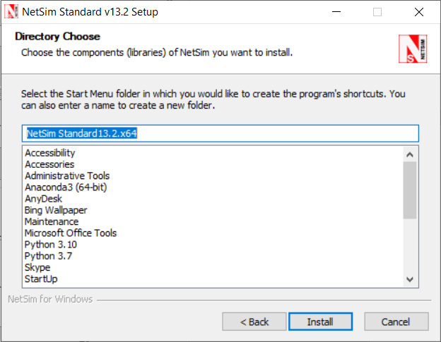 In the next screen, you will be requested to enter the Start Menu folder name. By default, it shows NetSim Standard for Standard version install of NetSim. Click on the Install button to start the installation.