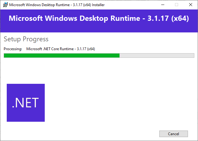 Figure 2‑22: Dot NET (.NET) installation begins