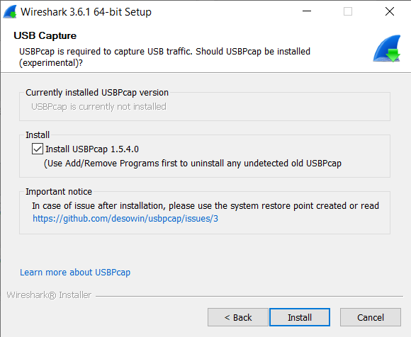 Select Install USBPcap 1.3.0.0 and click on Install button.
