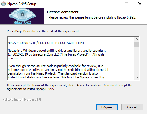 Figure 2‑32: Npcap License Agreement window